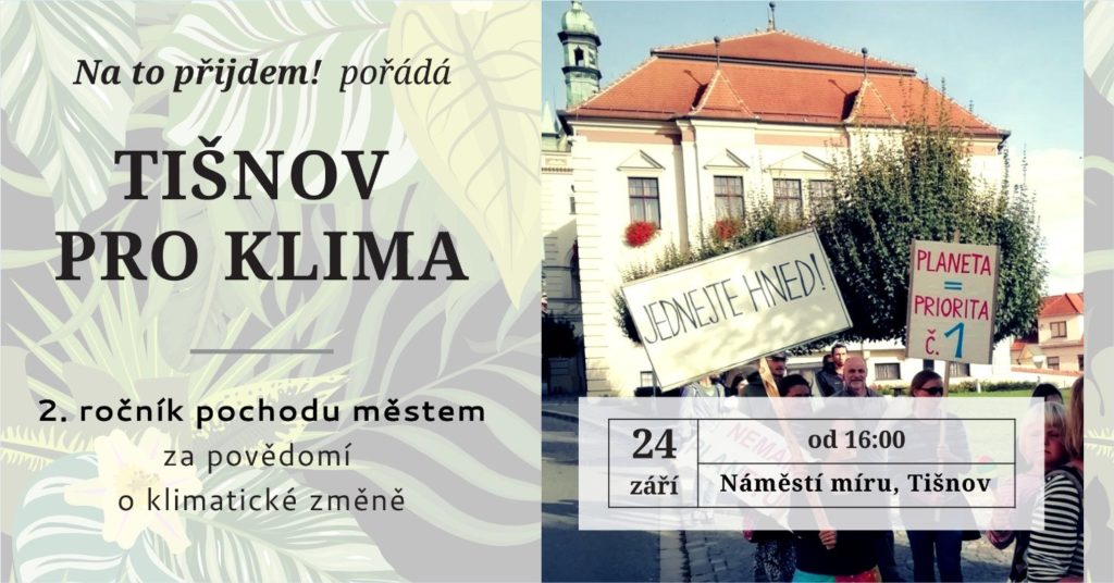 Ve čtvrtek 24.9.2020 ve čtyři hodiny začíná na Náměstí míru v Tišnově druhý ročník pochodu Tišnov pro klima, za povědomí o klimatické změně. Pochod pořádá neformální sdružení Na to přijdem! Zde je jejich facebook. Přijďte prosím podpořit dobrou věc. Aktivisté a členové pracovní skupiny pro zadání studie nezaháleli, udělali spoustu práce, jistě se o výsledcích dozvíte přímo od nich. 9.9.2020 se část této snahy završila, neboť Rada města konečně schválila pořízení Místní strategie adaptace na změnu klimatu a mitigační opatření města Tišnova. Text zadání najdete na stránkách města zde. Zajímavé informace najdete také na facebooku Cesty pro Tišnov zde.